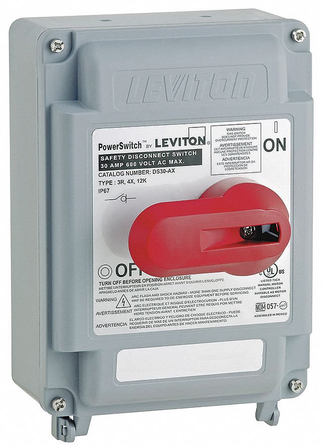 30 amp 600 volt three pole three phase ac manual motor controller suitable as motor disconnect toggle industrial grade non grounding back side wiring black powerswitch industrial grade ac manual motor controllers provide safe reliable control of a variety of motor loads.