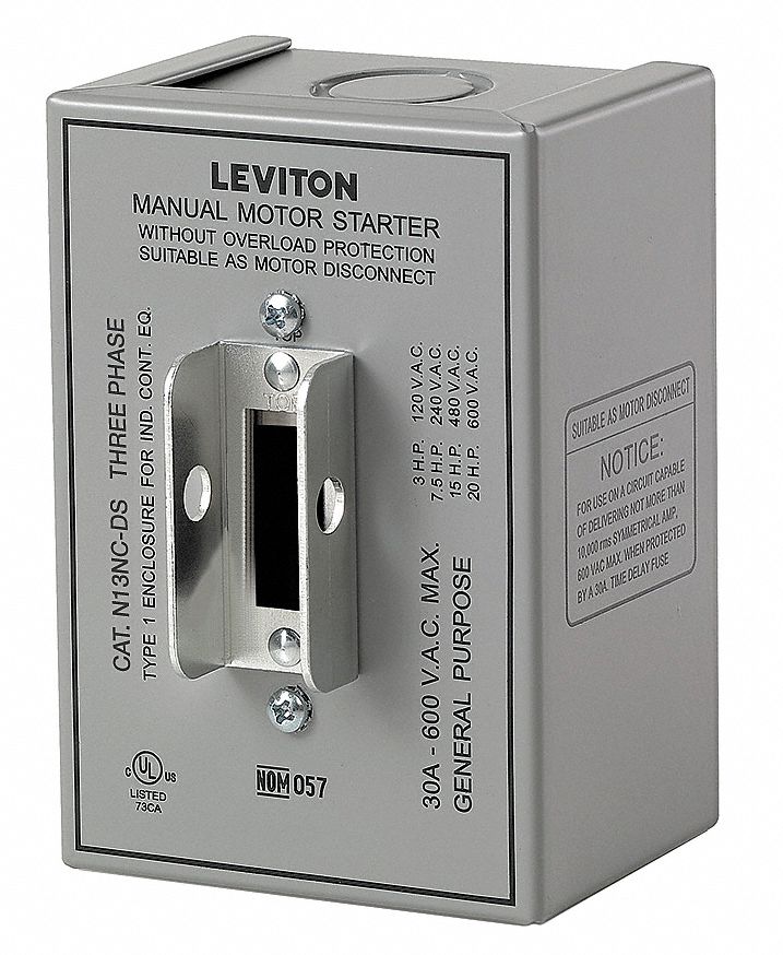 Built for commercial and industrial installations up to 60 amps leviton offers a line of industrial grade ac single phase and three phase manual motor controllers with a continuous current rating at all voltages up to 600v.