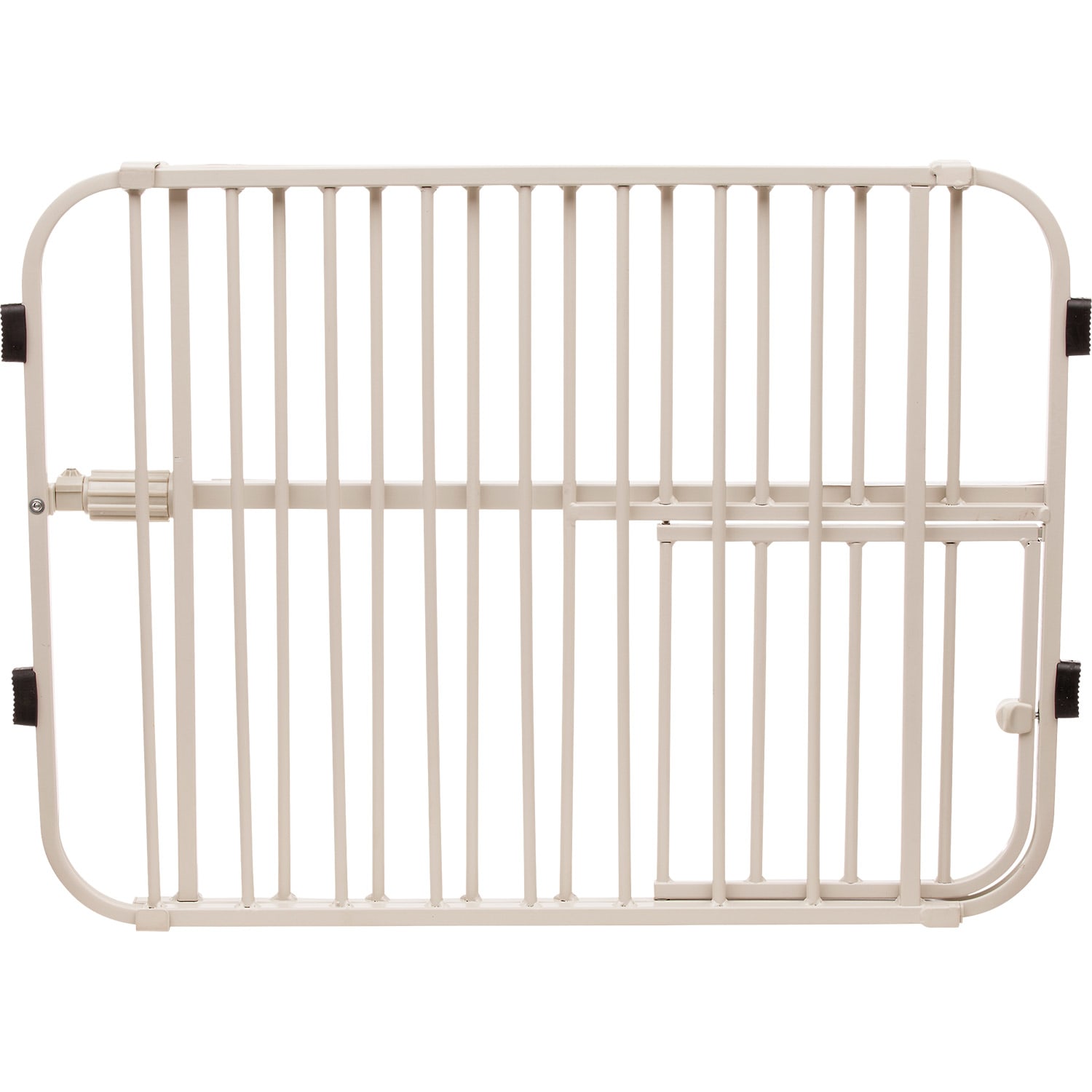 The tuffy expandable gate with small pet door fits openings between 26 38.